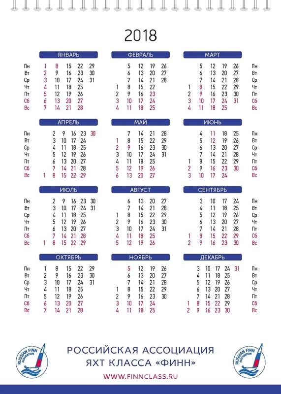 Настольный календарь Ассоциации класса Финн и Студенческой Парусной Лиги