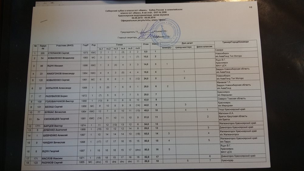 Сибирский Кубок - 8-й этап Кубка России в классе Финн